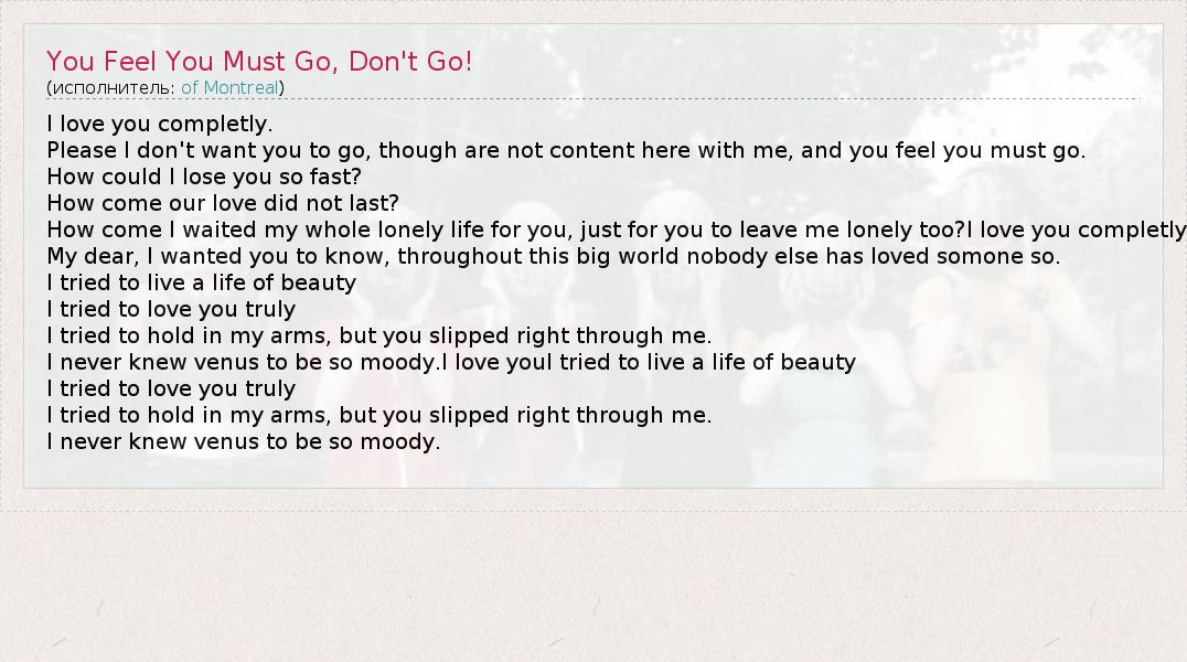 А как ты думаешь, о чем песня "You Feel You Must Go, Don't Go!" ?