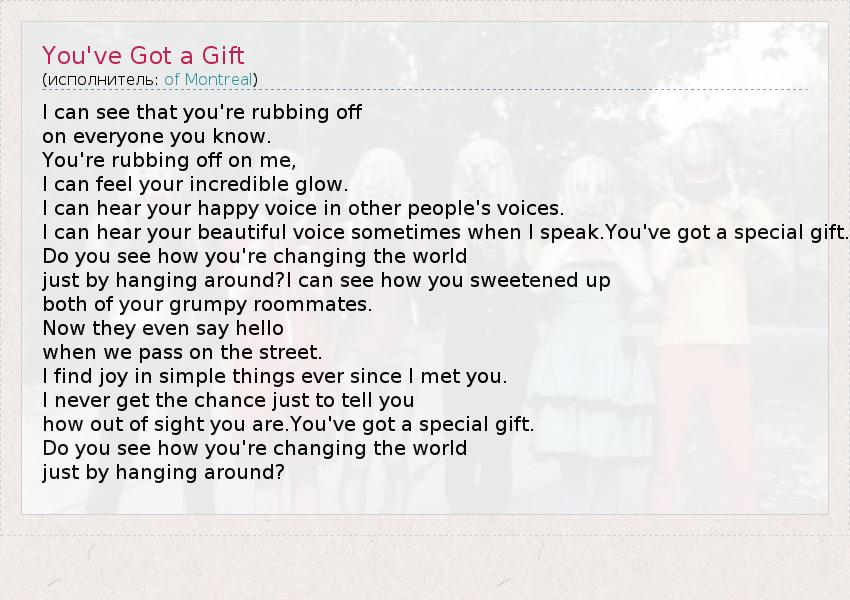 А как ты думаешь, о чем песня "You've Got a Gift" ?