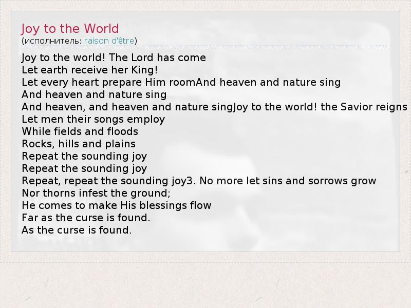 А как ты думаешь, о чем песня "Joy to the World" ?