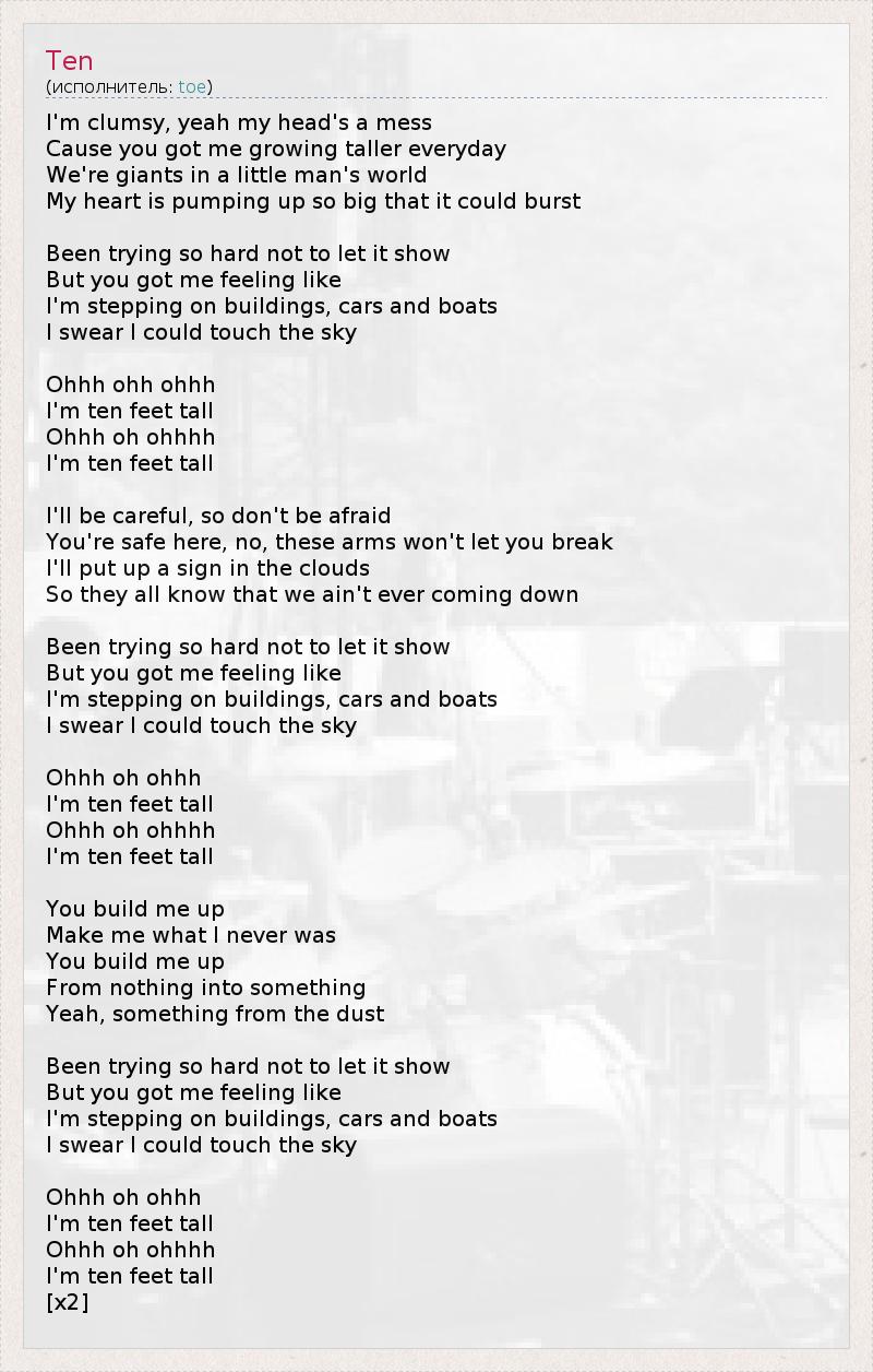 * Фразеологизм "feel ten feet tall" означает "чувствовать себя окрылённым", "летать как на крыльях".