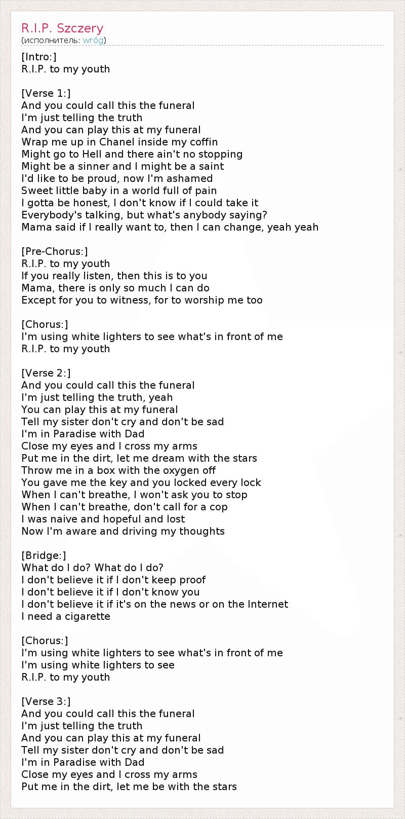 А как ты думаешь, о чем песня "R.I.P. Szczery" ?