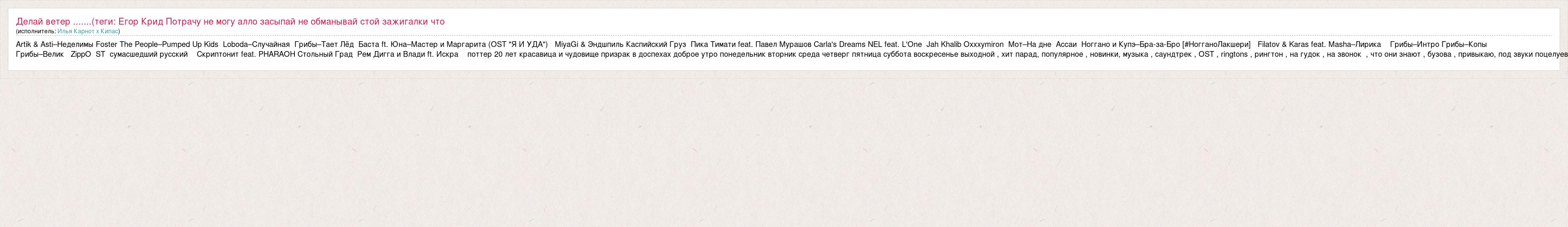 ГлавнаяИсполнителиИлья Карнот х КипасДелай ветер .......(теги: Егор Крид Потрачу не могу алло засыпай не обма
