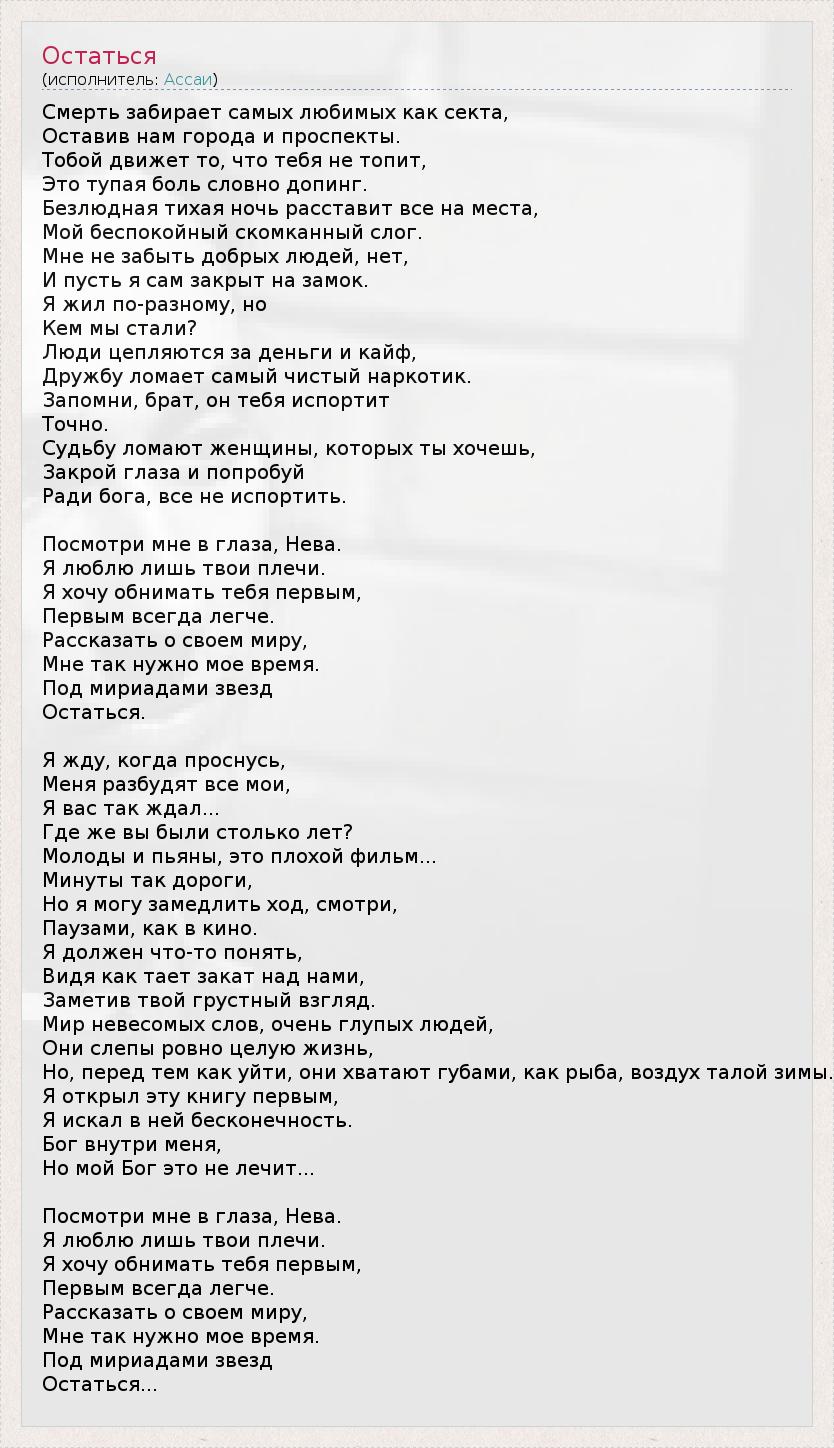 А как ты думаешь, о чем песня "Остаться" ?