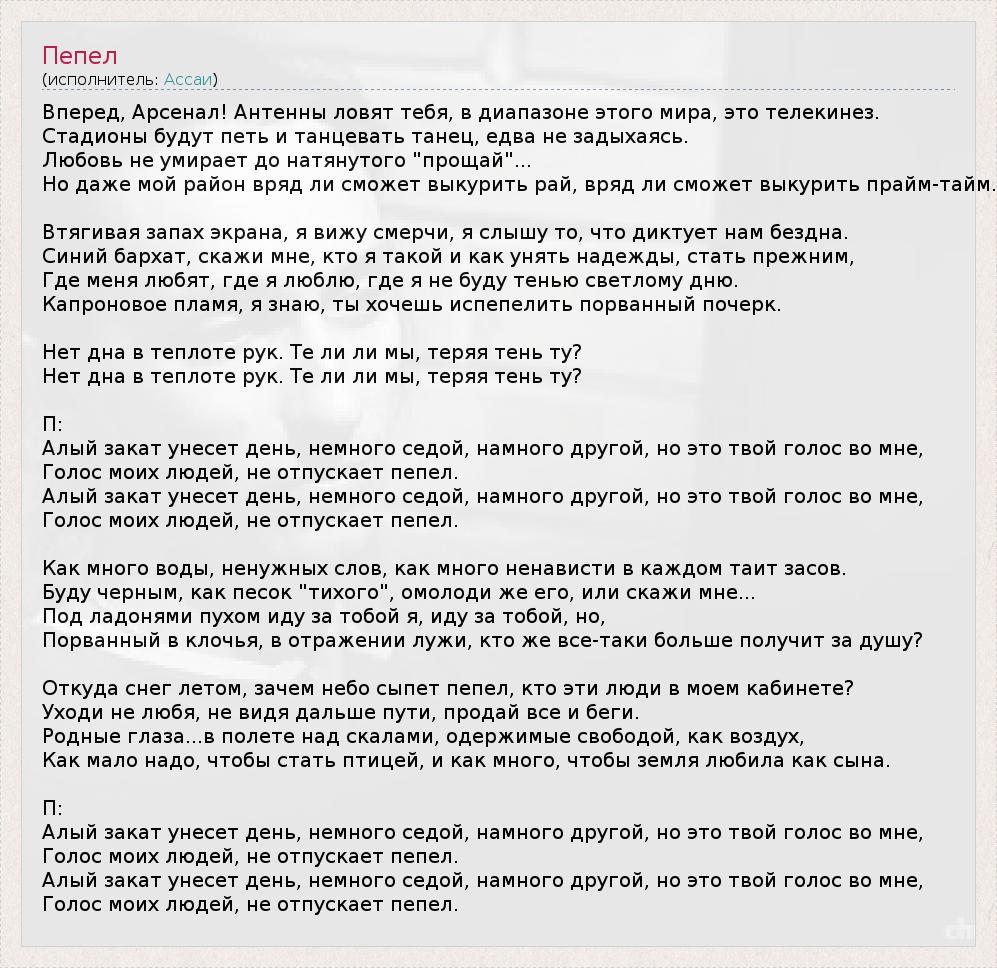 Алый закат унесет день, немного седой, намного другой, но это твой голос во мне,