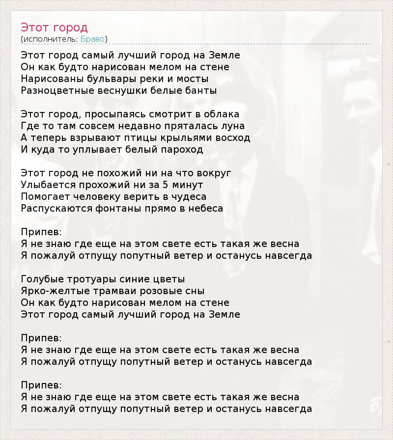 Это интересно:История группы Браво берет отсчет с осени 1983 года, когда студент I курса Московского Института Инженеров Железнодорожного Транспорта Евгений Хавтан приехал на прослушивание к музыкантам группы Постскриптум, возглавляемой тогда Гариком Сукачевым. Музыканты "Постскриптума" не произвели на Хавтана никакого впечатления, также как и он на них. Единственным, кто понравился ему тогда,... продолжение