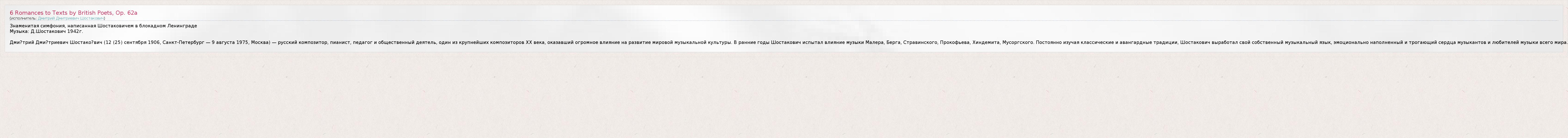 А как ты думаешь, о чем песня "6 Romances to Texts by British Poets, Op. 62a" ?