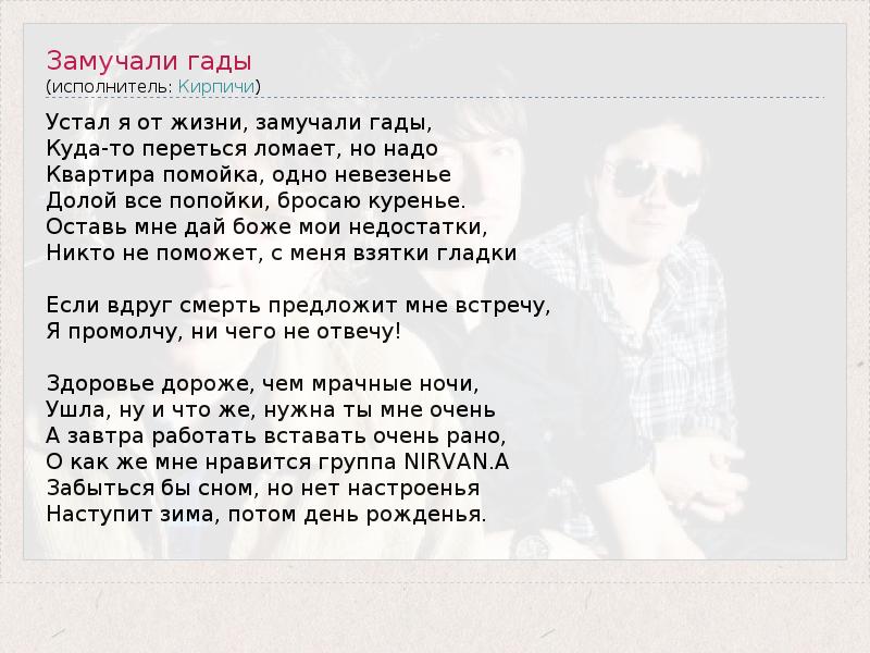 ГлавнаяИсполнителиКирпичиЗамучали гады