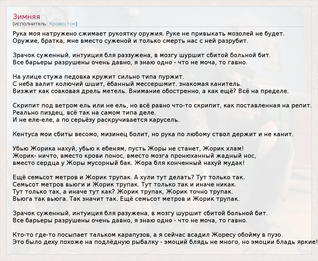 Зрачок суженный, интуиция бля разужена, в мозгу шуршит сбитой больной бит.
