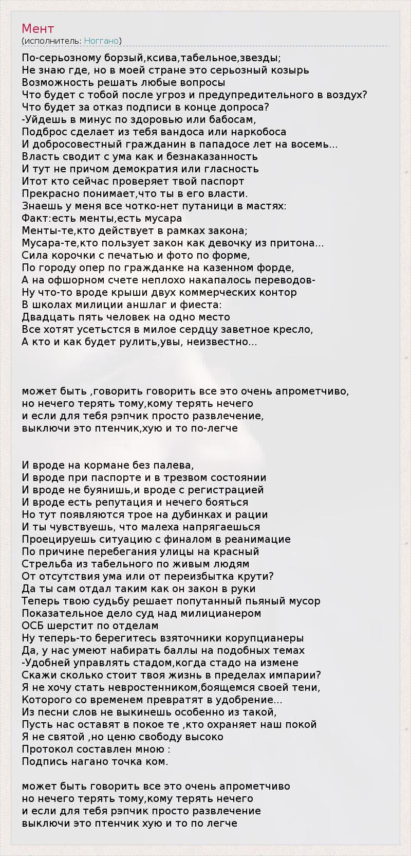 А как ты думаешь, о чем песня "Мент" ?