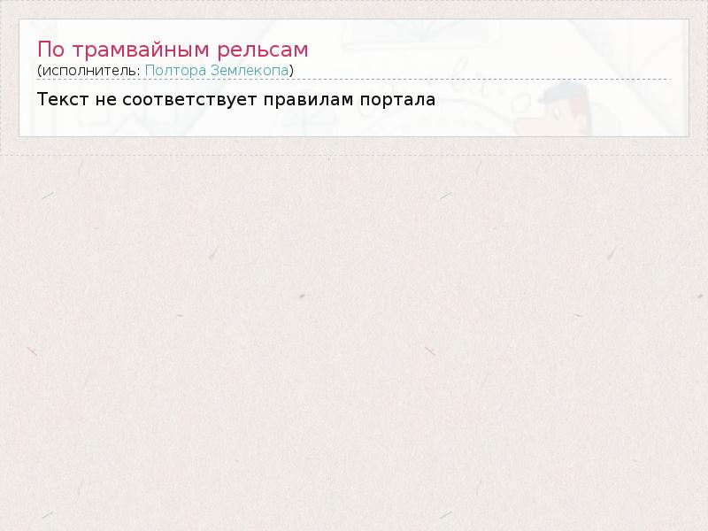 ГлавнаяИсполнителиПолтора ЗемлекопаПо трамвайным рельсам