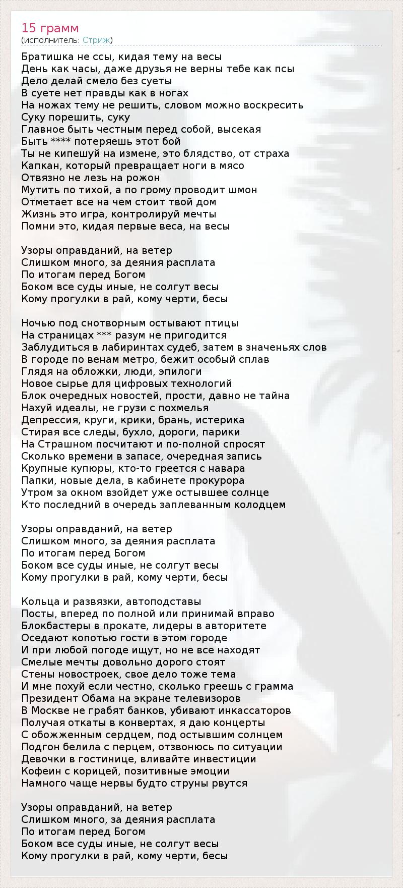 Это интересно:Настоящее имя: РоманДата рождения: 07.03.1980Место рождения: г. НавашиноКраткое досье: начал свой хип-хоп путь в 2002 году. На студии M.Y.M. записал свой первый альбом, который вышел в 2004 году тогда еще под другим именем.Тогда он записал альбом "Вне Закона" под именем Зубрила. Тогда же Стриж знакомится с участниками группы Дымовая Завеса (Slim и Lexus). Спустя некоторое время Стриж начинает... продолжение