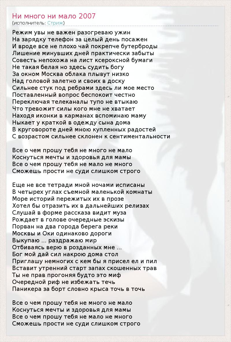 ГлавнаяИсполнителиСтрижНи много ни мало 2007