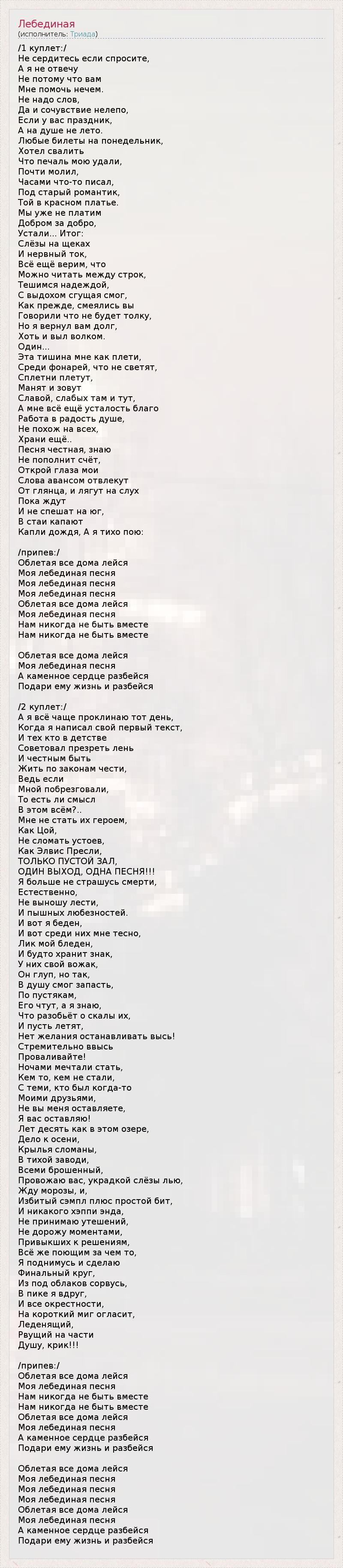 Моя лебединая песня
