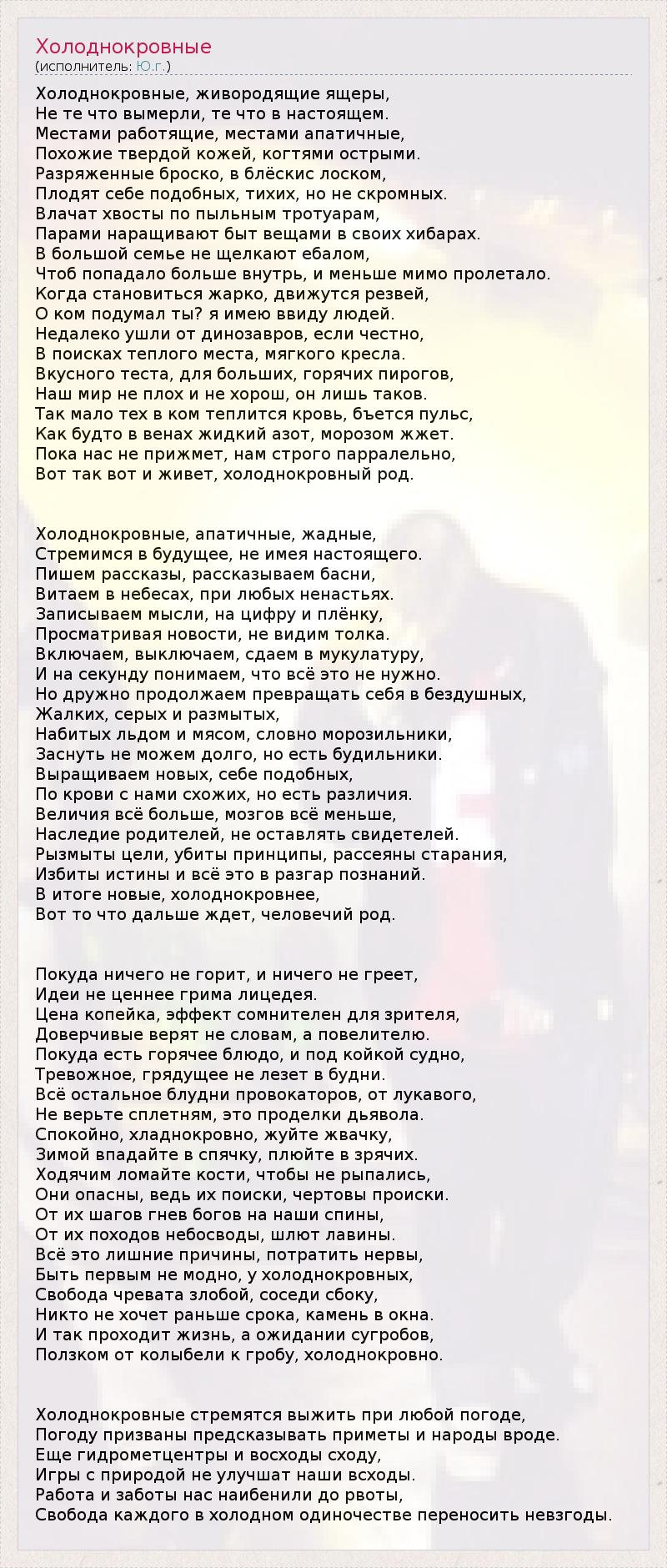 ГлавнаяИсполнителиЮ.г.Холоднокровные