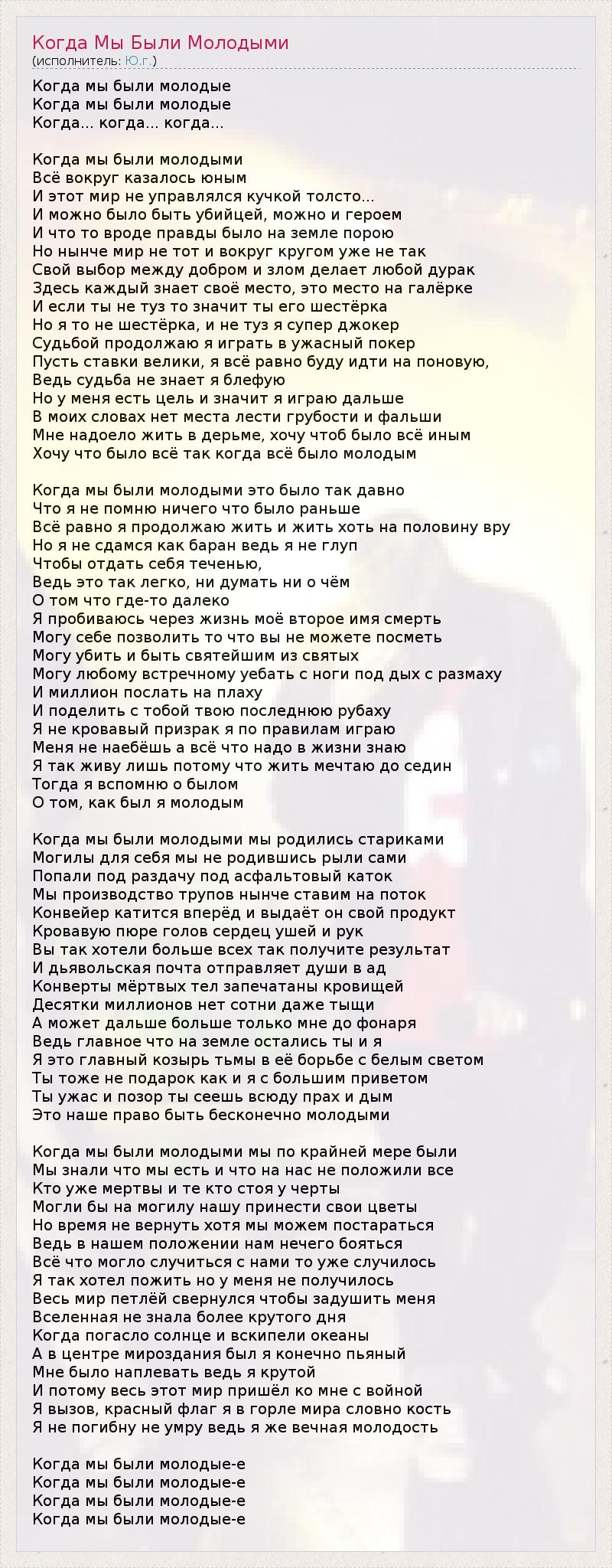 ГлавнаяИсполнителиЮ.г.Когда Мы Были Молодыми