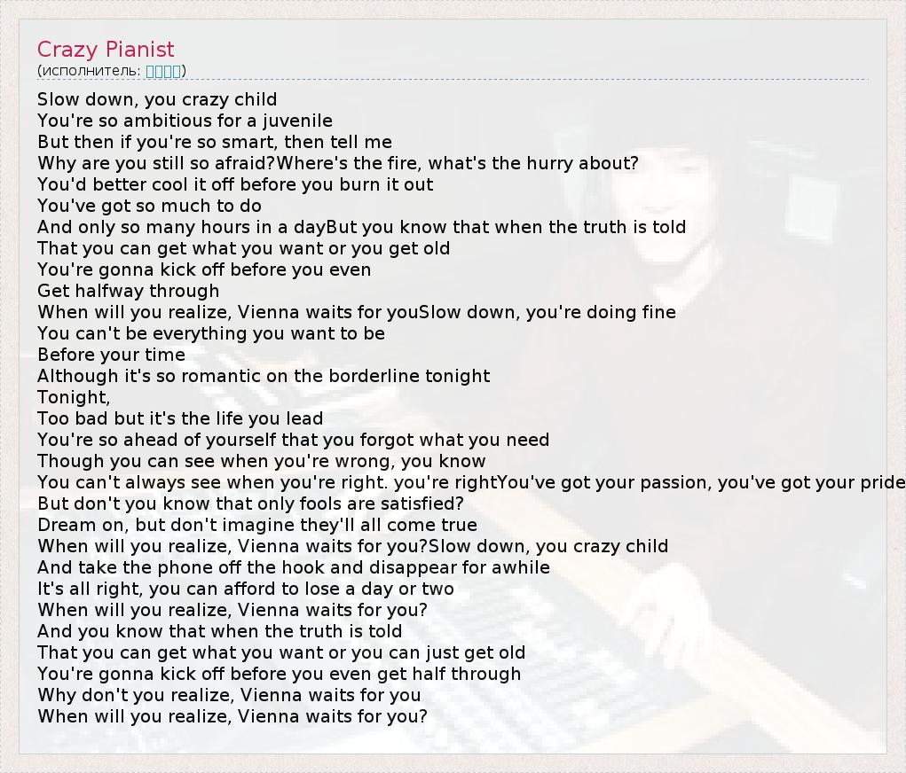А как ты думаешь, о чем песня "Crazy Pianist" ?