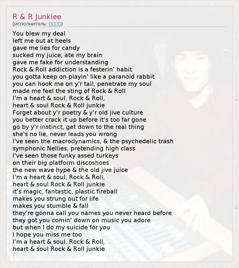 А как ты думаешь, о чем песня "R & R Junkiee" ?
