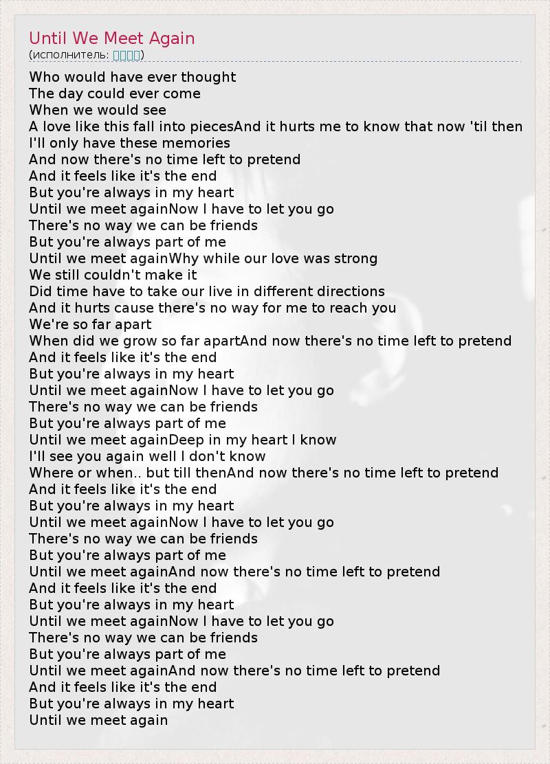 Until we meet againNow I have to let you go