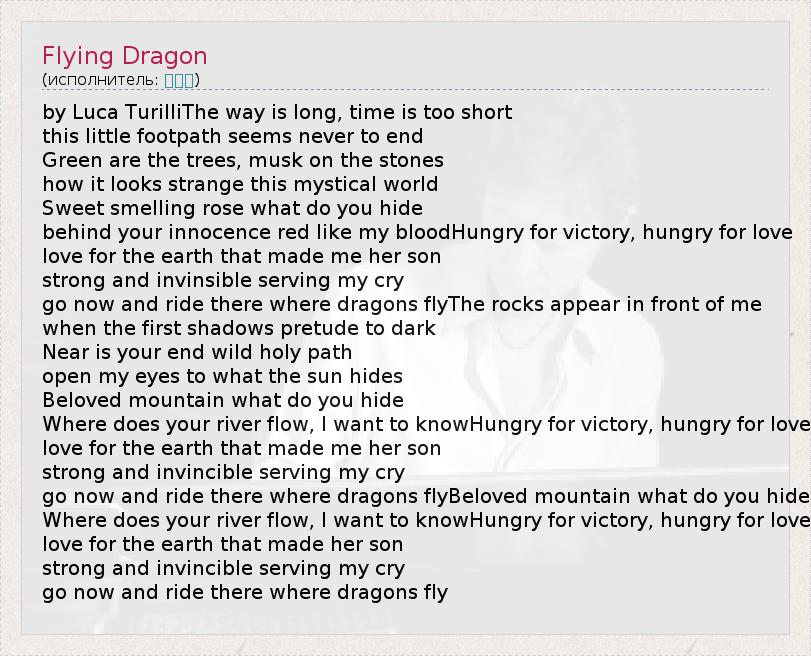 А как ты думаешь, о чем песня "Flying Dragon" ?