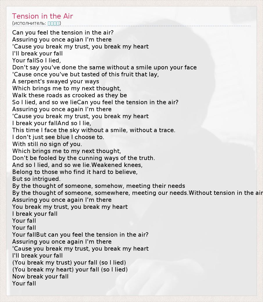 А как ты думаешь, о чем песня "Tension in the Air" ?
