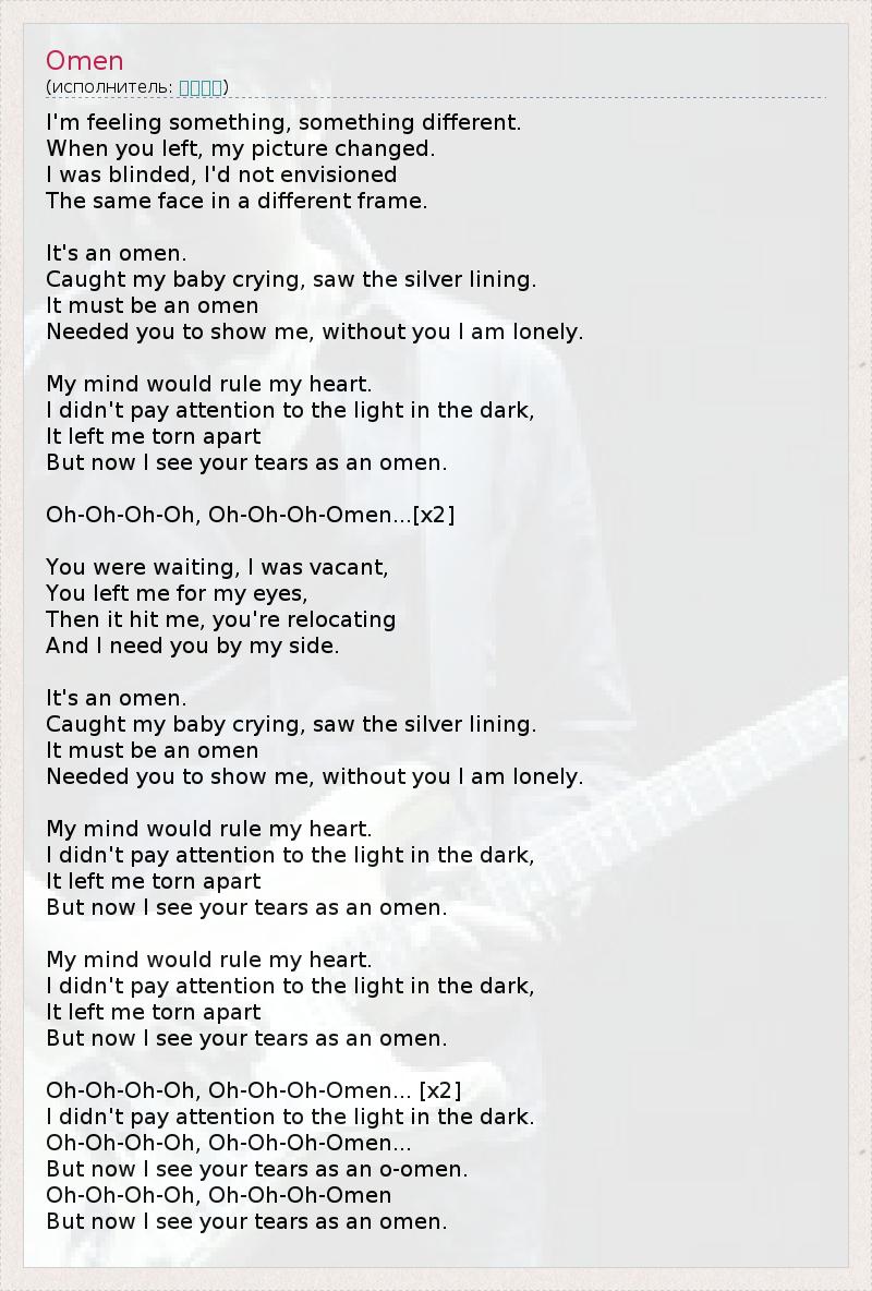 Oh-Oh-Oh-Oh, Oh-Oh-Oh-Omen... [x2]