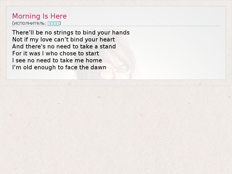 А как ты думаешь, о чем песня "Morning Is Here" ?