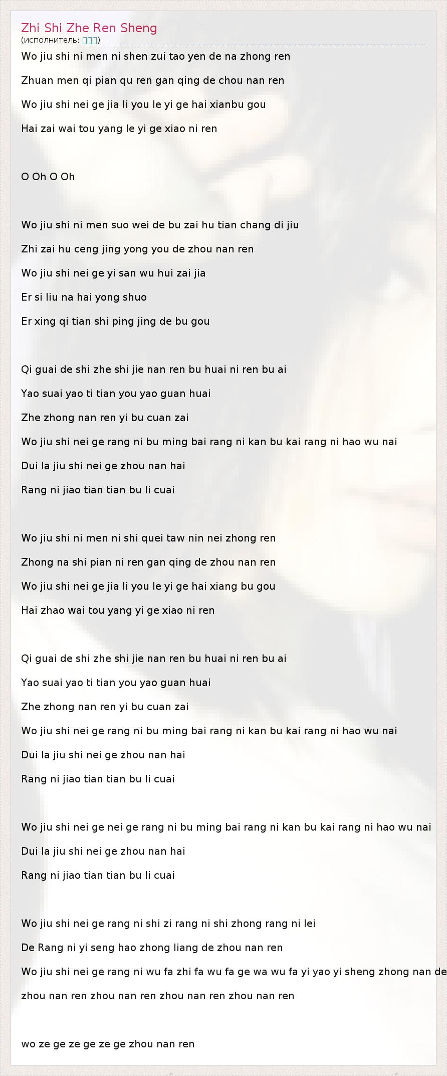 А как ты думаешь, о чем песня "Zhi Shi Zhe Ren Sheng" ?
