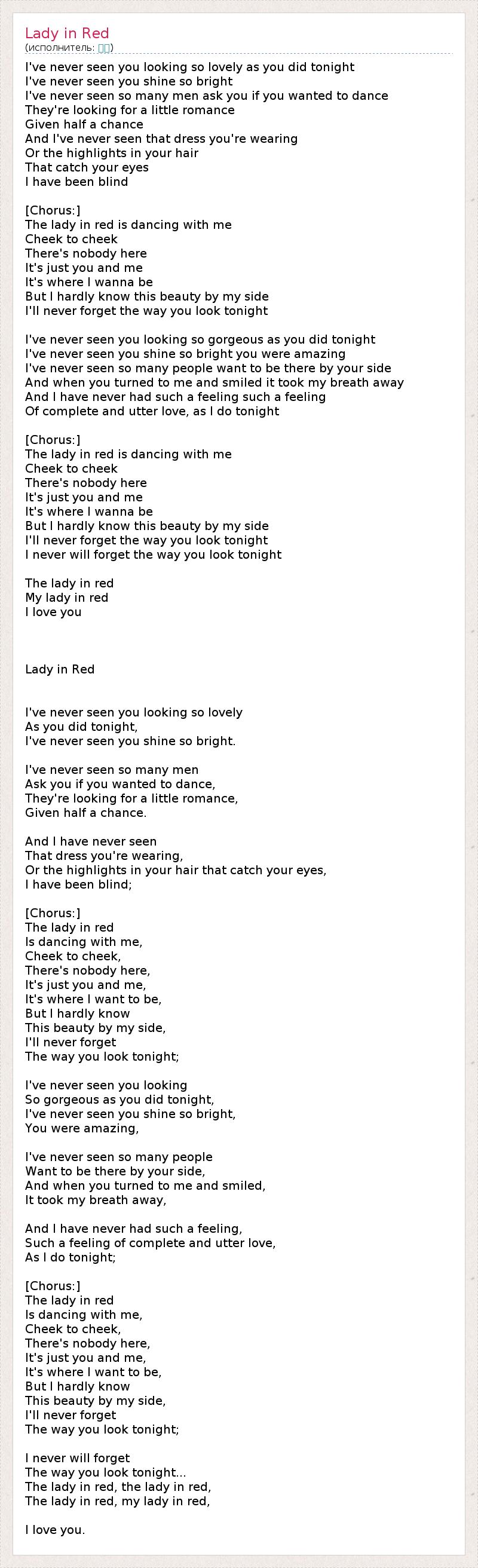 А как ты думаешь, о чем песня "Lady in Red" ?