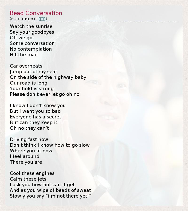 А как ты думаешь, о чем песня "Bead Conversation" ?