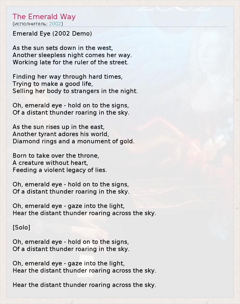 А как ты думаешь, о чем песня "The Emerald Way" ?