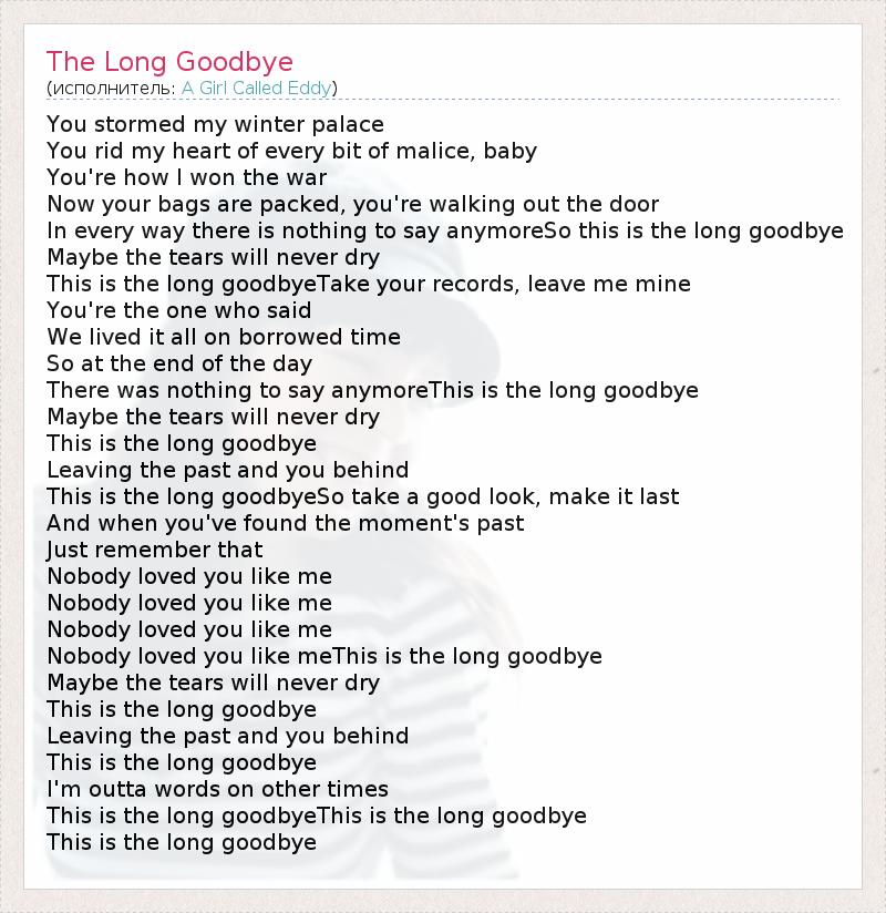 А как ты думаешь, о чем песня "The Long Goodbye" ?