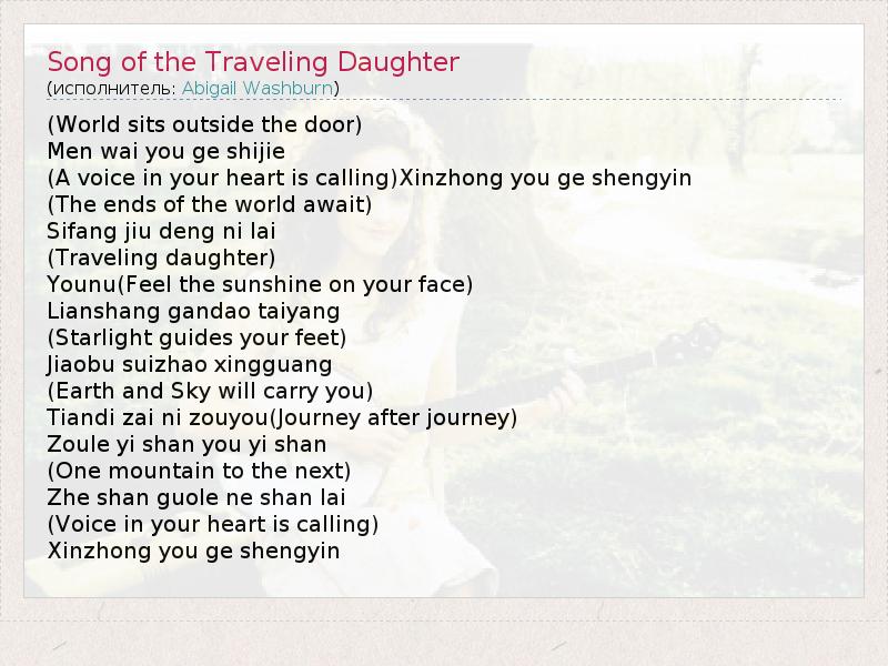А как ты думаешь, о чем песня "Song of the Traveling Daughter" ?