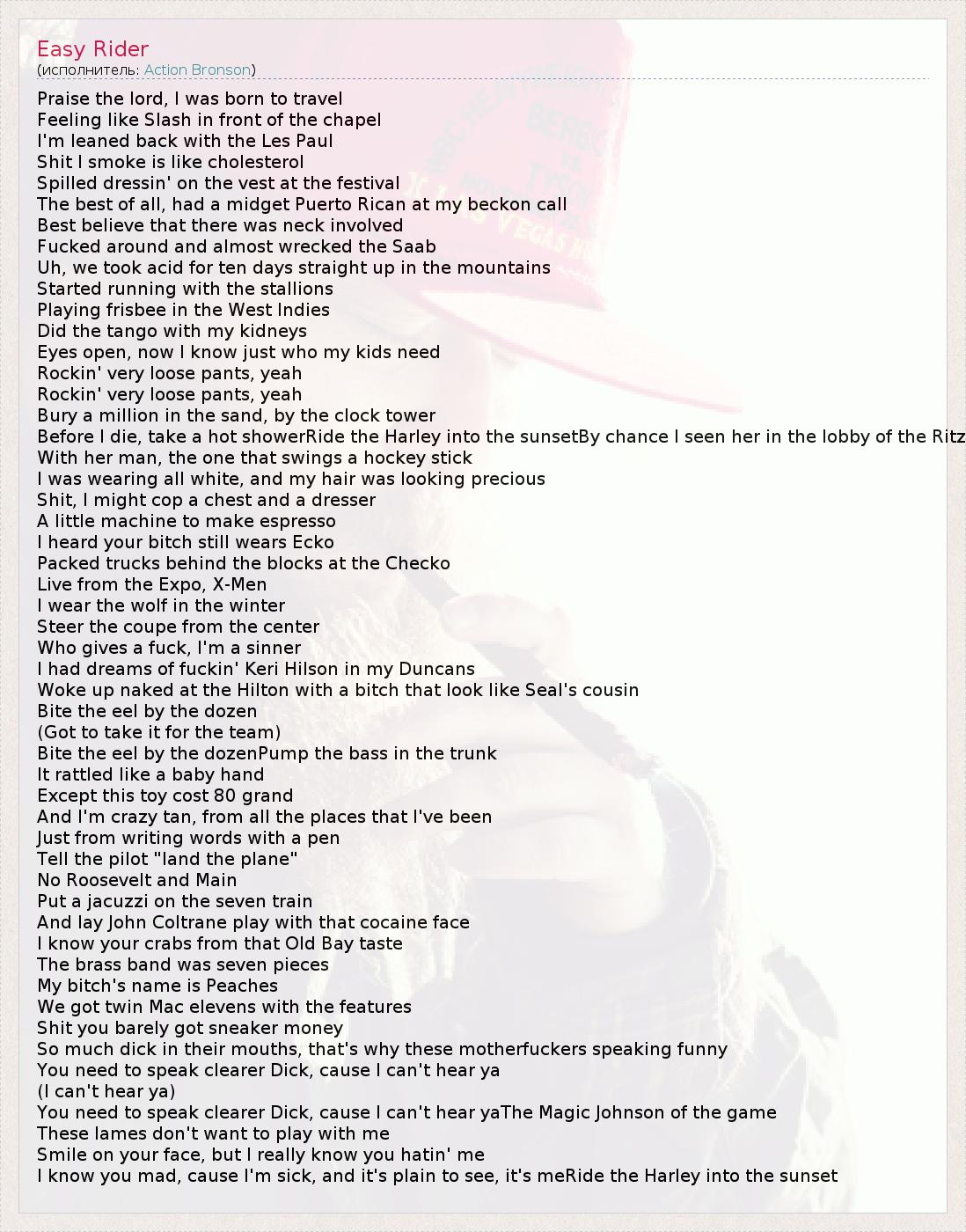 А как ты думаешь, о чем песня "Easy Rider" ?