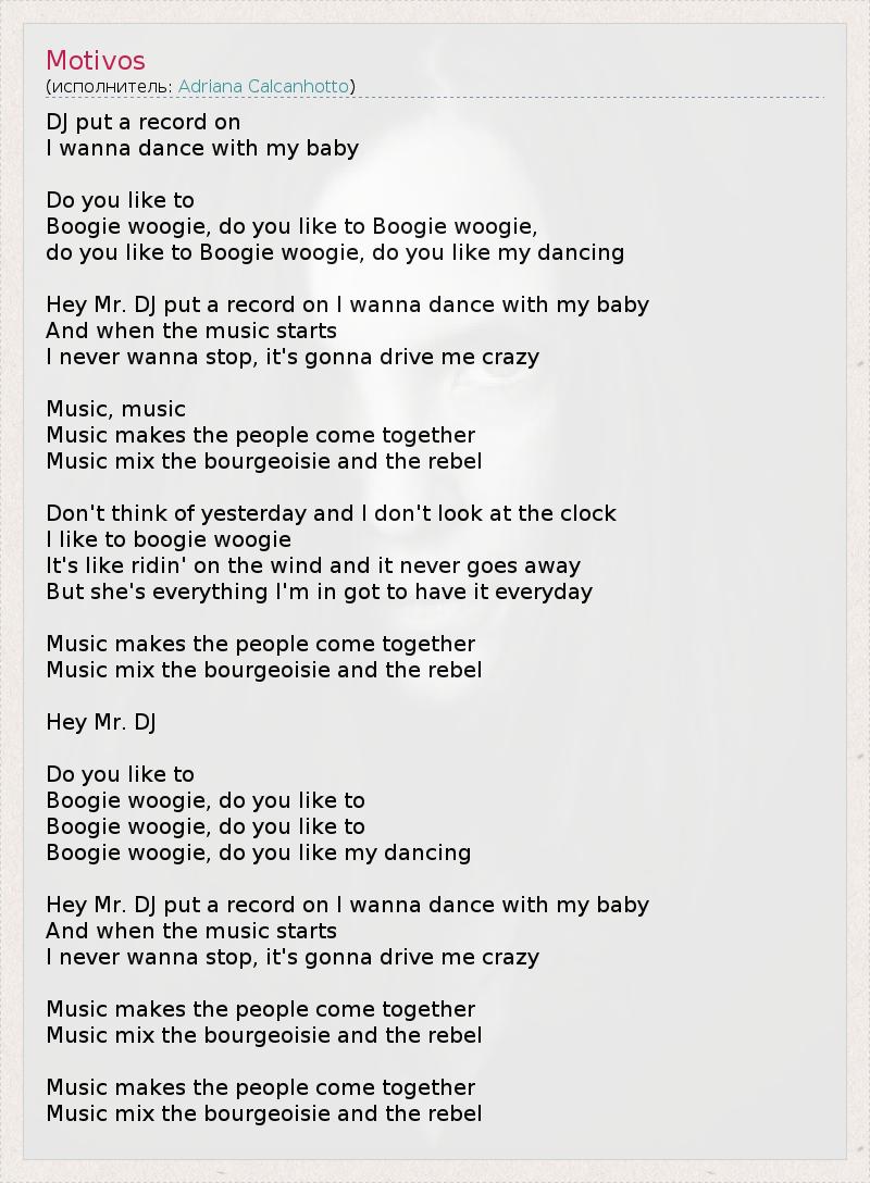 Boogie woogie, do you like to
