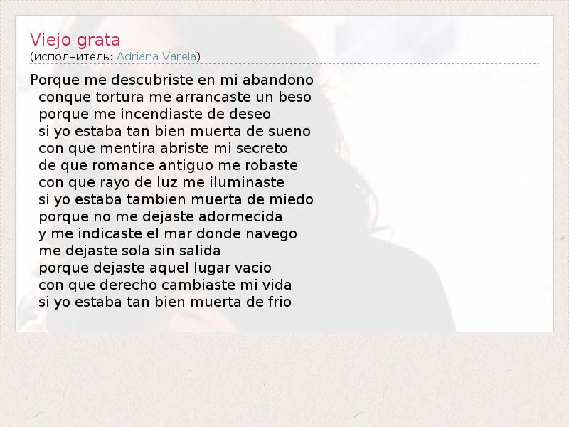 А как ты думаешь, о чем песня "Viejo grata" ?