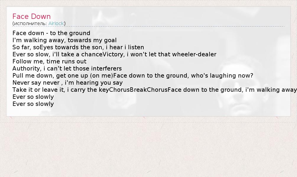 Take it or leave it, i carry the keyChorusBreakChorusFace down to the ground, i'm walking away