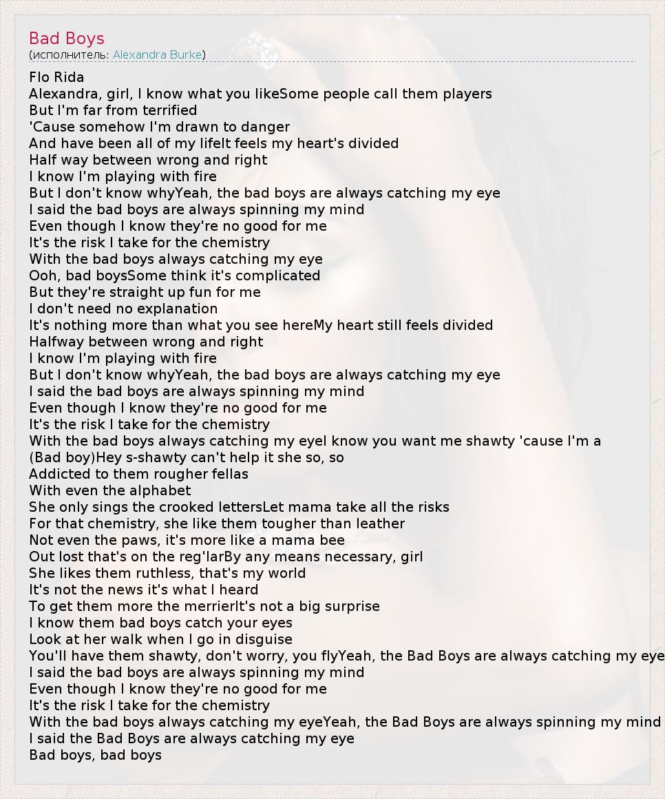 А как ты думаешь, о чем песня "Bad Boys" ?