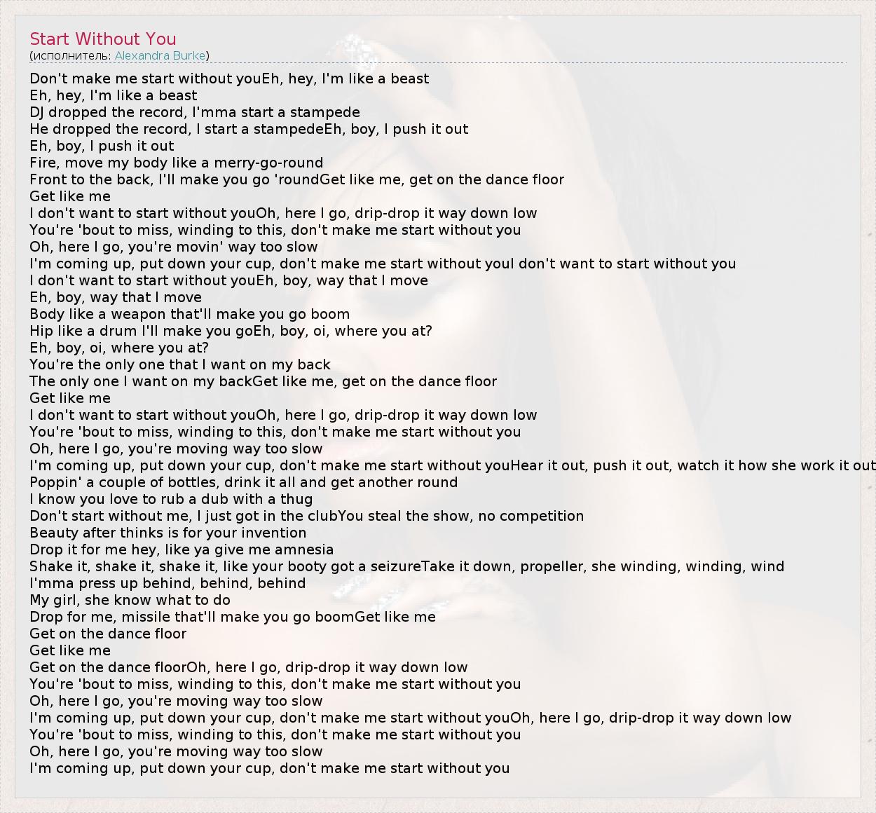 I don't want to start without youOh, here I go, drip-drop it way down low