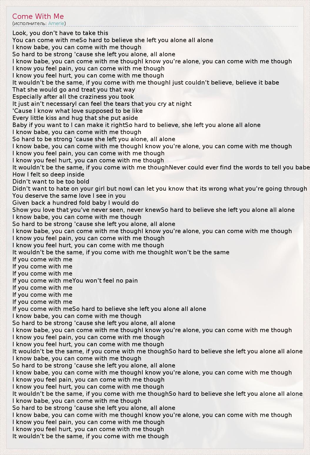 If you come with meSo hard to believe she left you alone all alone