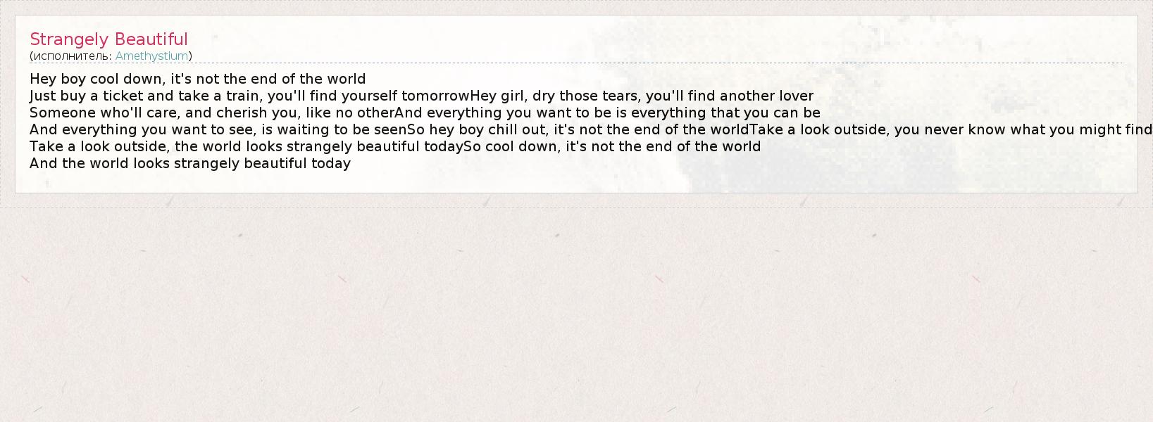 А как ты думаешь, о чем песня "Strangely Beautiful" ?