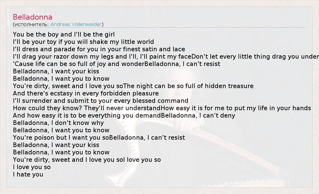 'Cause life can be so full of joy and wonderBelladonna, I can't resist