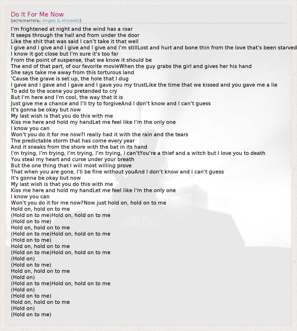Won't you do it for me now?Now just hold on, hold on to me