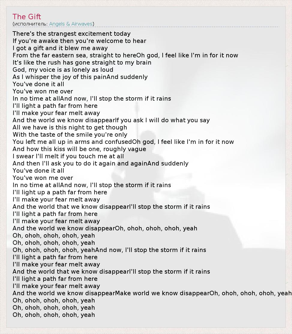 Это интересно:Angels & Airwaves — проект из Сан Диего (Калифорния), созданный участником группы blink-182, Томом ДеЛонгом. Его друг и бывший гитарист Box Car Racer Дэвид Кеннеди, барабанщик Атом Уиллард, ранее игравший в The Offspring и бывший бас-гитарист Distillers Раян Синн — стали другими участниками группы.Официально группа зарегистрирована как торговая марка «Angels & Airwaves» 24 июня 2005 года. Том утверждает, что его новый... продолжение