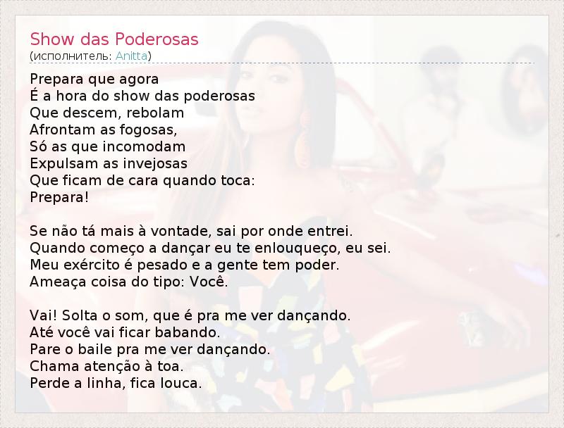 А как ты думаешь, о чем песня "Show das Poderosas" ?