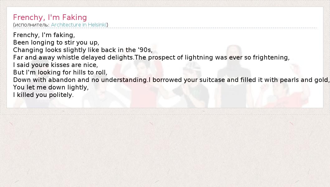 А как ты думаешь, о чем песня "Frenchy, I'm Faking" ?
