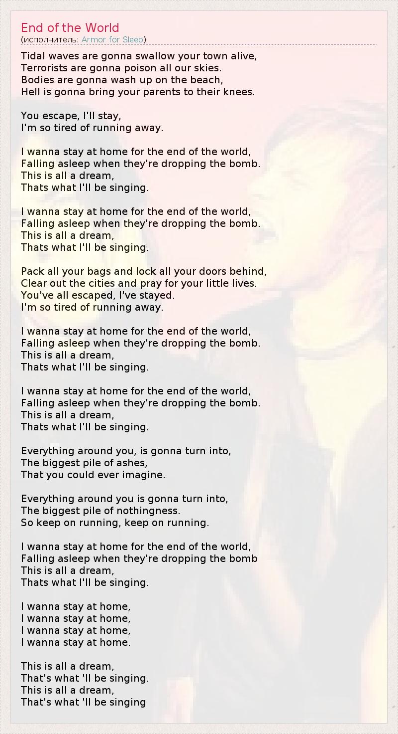 I wanna stay at home for the end of the world,
