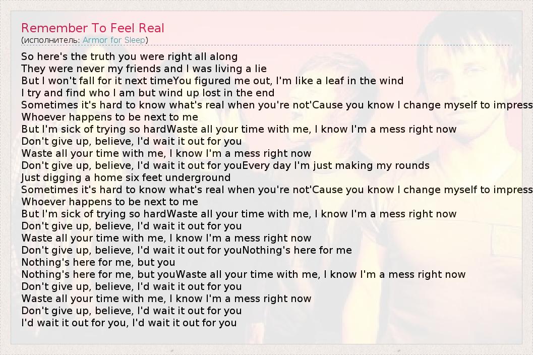 А как ты думаешь, о чем песня "Remember To Feel Real" ?