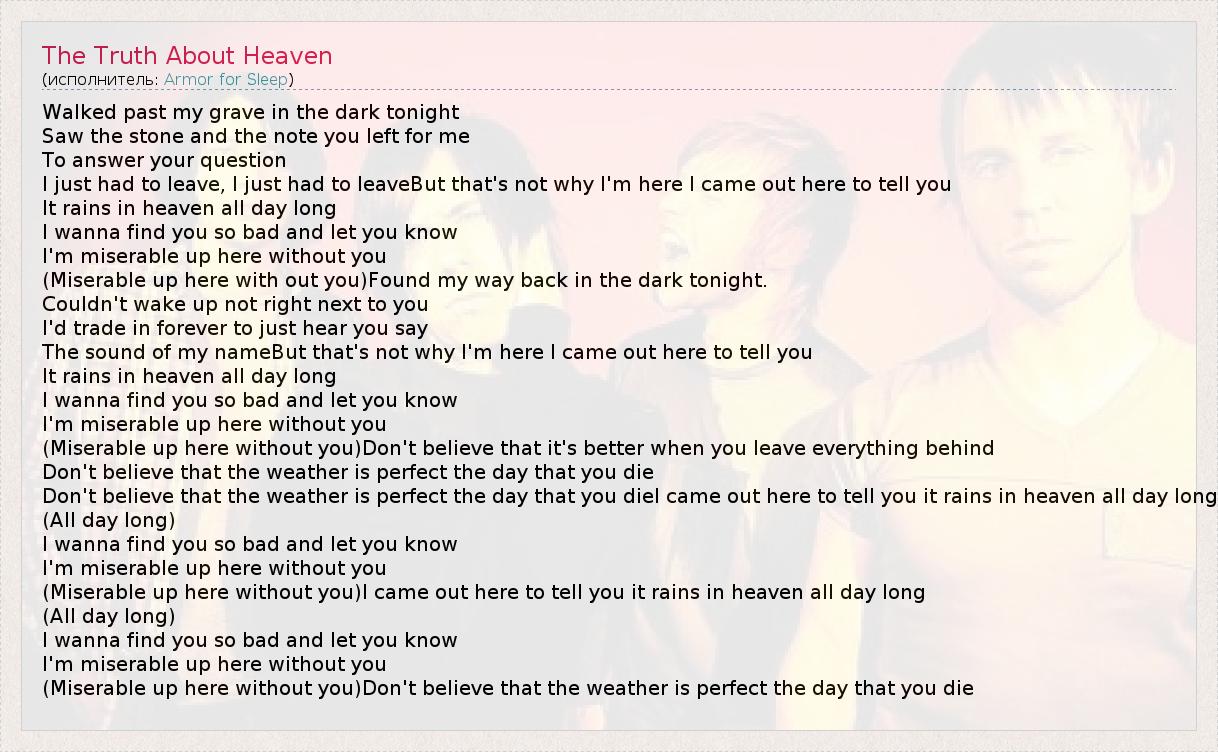 А как ты думаешь, о чем песня "The Truth About Heaven" ?
