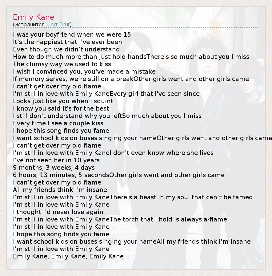 I'm still in love with Emily KaneThere's a beast in my soul that can't be tamed