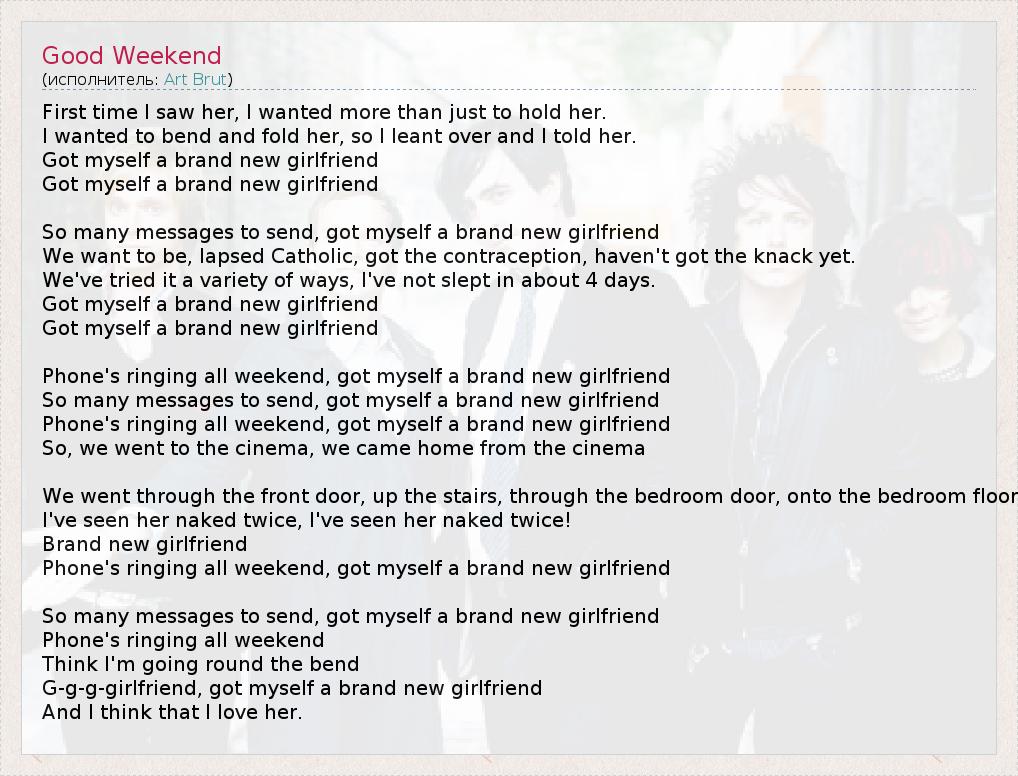 А как ты думаешь, о чем песня "Good Weekend" ?